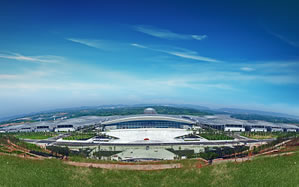 重慶國(guó)際博覽中心整體呈蝴蝶造型。其場(chǎng)館室內(nèi)展覽面積20萬(wàn)平米,共16個(gè)全平層無(wú)柱式展廳,單個(gè)展廳使用面積1.15
